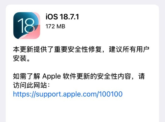 苹果于昨日向 iPhone 用户同步推送 iOS 18.7.1 与 iOS 26.0.1 两项重要更新,其中 iOS 18.7.1 专为坚守旧系统的用户打造,成为 iOS 18 系列的又一 "收官级" 维护版本。