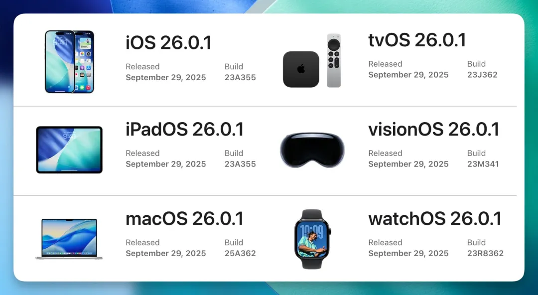 与 iOS 18.7.1 的精准定位不同,iOS 26.0.1 作为 iOS 26 大版本的首个修复更新,承担着解决新系统初期故障的重任。官方日志显示,其修复范围涵盖五大核心问题:iPhone 17 系列 Wi-Fi 与蓝牙随机断连、少数设备蜂窝网络失效、特定光线拍摄的照片残影、自定义图标空白以及 VoiceOver 功能异常等。