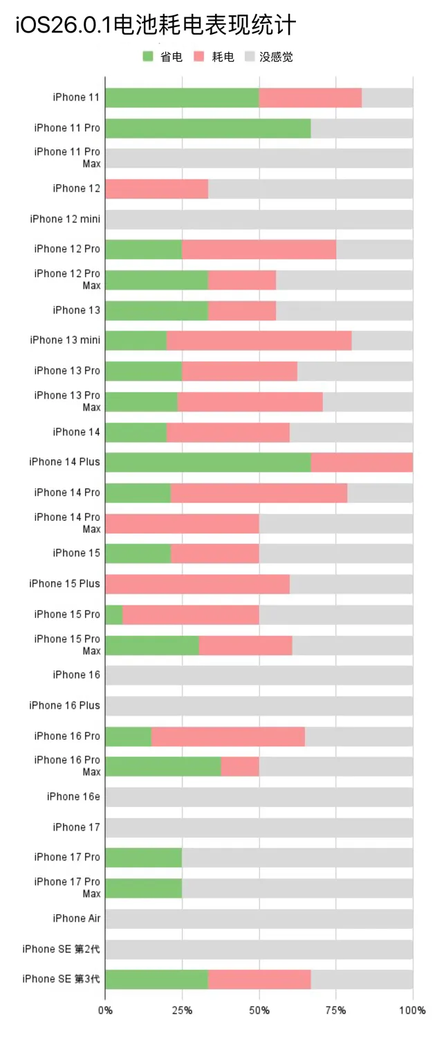 不少人对于 iPhone 升级至 iOS 26.0.1 后,非常在意是否会造成耗电问题,为了得到更准确的结果,不应只听信单一网友的观点,而是应该依靠数据统计,毕竟每个人的设备环境和升级方式都不尽相同。