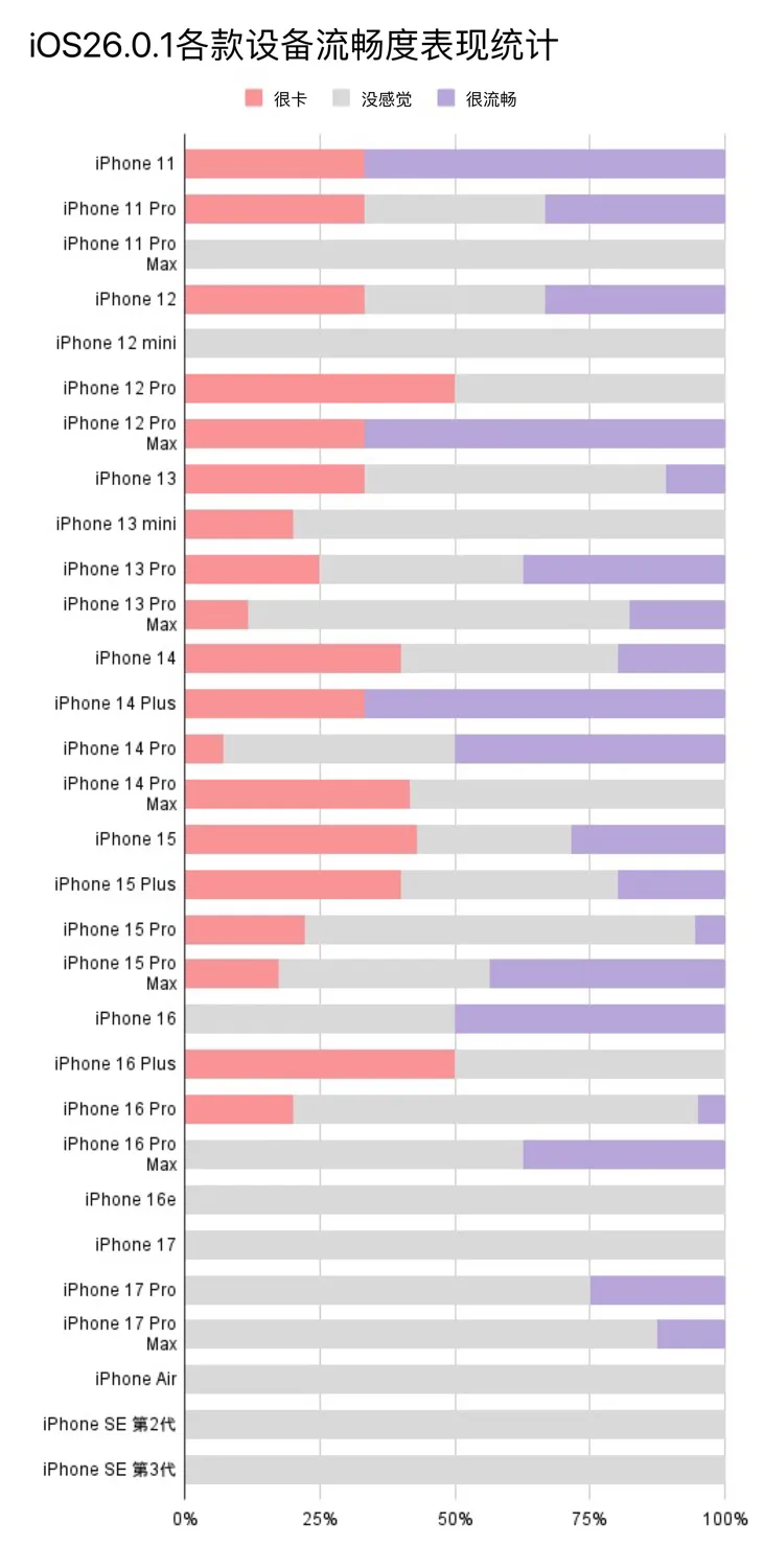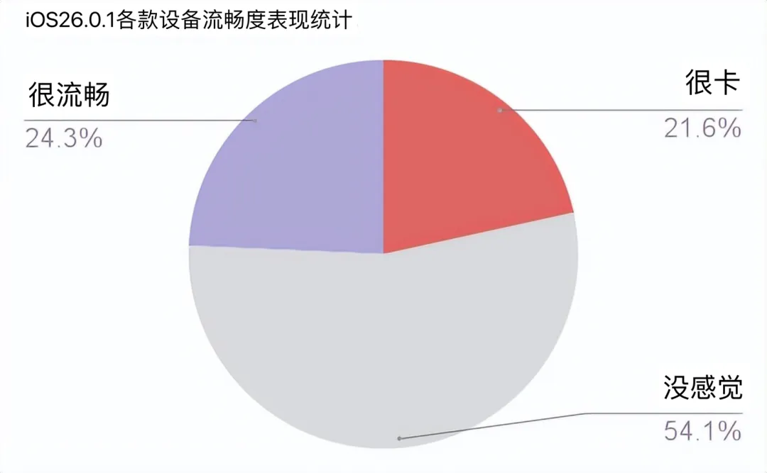 升级 iOS 26.0.1 系统后,一同来探讨 iPhone 顺畅度表现如何吧!让我们一起通过以下统计数据来了解: