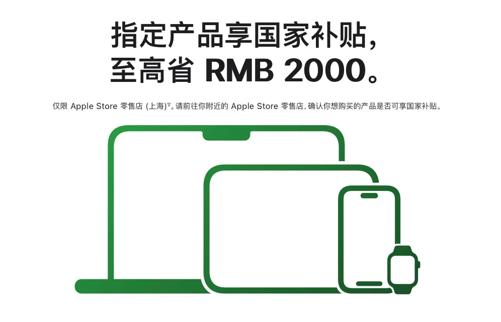 部分符合条件的 iPhone、iPad、Apple Watch、Mac 产品都可以享受补贴。