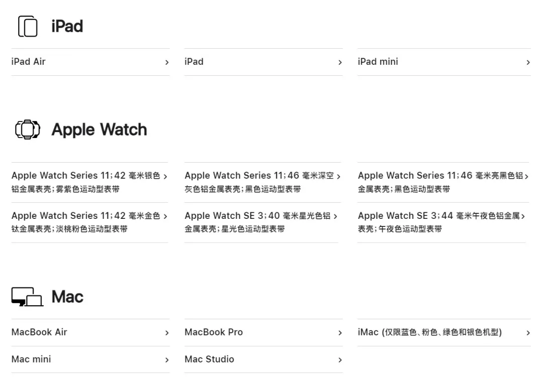 除 iPhone 外,部分 iPad、Apple Watch 及 Mac 也支持国补,具体支持机型如下。