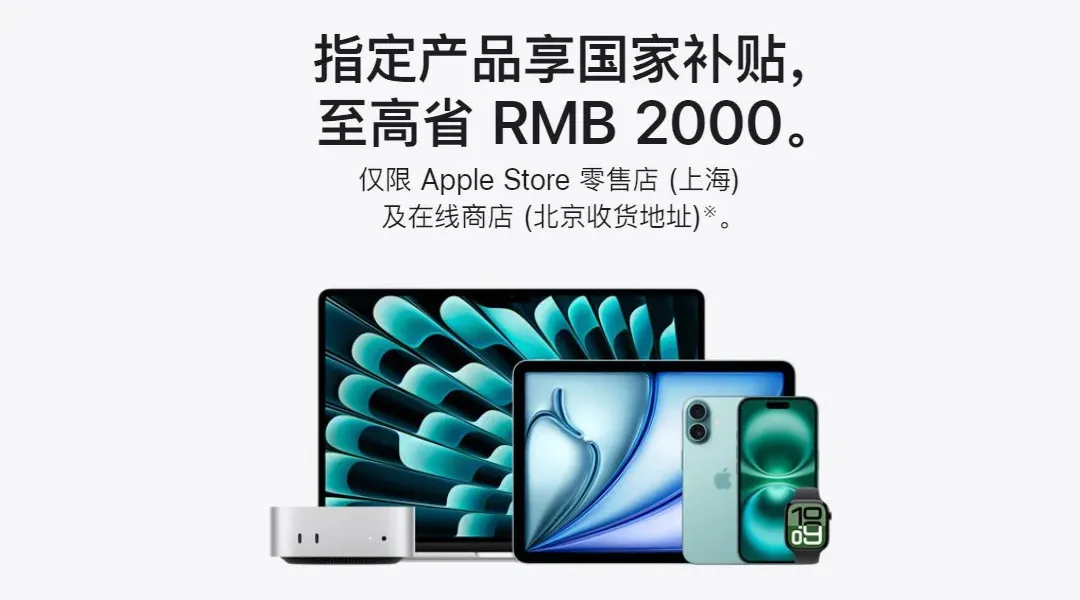近日,苹果官网突然官宣新一轮国补优惠,用户在官方指定平台购买 iPhone、iPad、Mac、Apple Watch 系列新品,最高可省 2000 元。