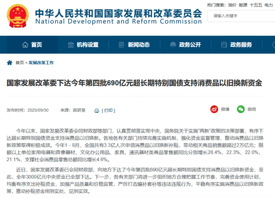 好消息是,10 月 1 日第四批 690 亿元国家补贴资金已下达,叠加前三批剩余的 40 亿元结余,实际可用额度达 730 亿元,资金更充足,有望降低用户领券难度和更多地区覆盖范围。