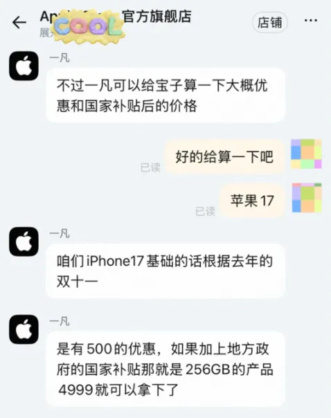 接下来双十一即将到来,按照去年苹果15的降价力度,再加上今年的国补,4999元拿下iPhone17完全有可能!