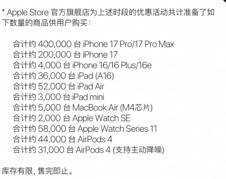 据悉今年参与双11活动的机型包括iPhone 17系列、iPhone Air、iPad Pro M5、MacBook Pro M5等新品,其中 iPhone 17 Pro 和 iPhone 17 Pro Max,两者在天猫 Apple Store 旗舰店和京东自营均降价 300 元。