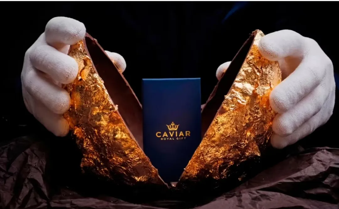 除了对iPhone外观的改造以外,本次 Caviar 将奢华体验延伸至外包装设计。其产品容器,变成了个金色的“惊喜蛋”。