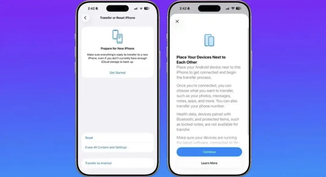 此次更新最受关注的新增跨平台数据传输功能,用户可在设置中找到“传输至安卓”入口,无需额外下载应用,即可将照片、短信、备忘录、App 等双向转移至安卓设备。