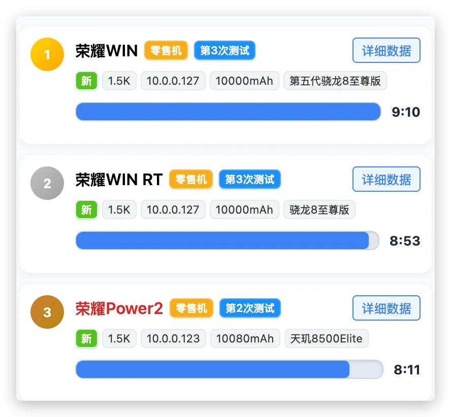2026年开年的这场“大电池长续航”争夺战,第一阶段的战果已经出炉了。荣耀这波属实是赢麻了,旗下WIN系列和Power 2凭借极限场景下8小时以上的亮屏成绩,直接包圆了新评科技续航榜单的冠、亚、季军。